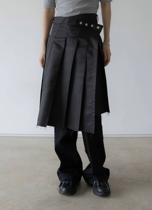 尼龍金屬扣斜腰百摺五分裙[ 2 COLOURS ]