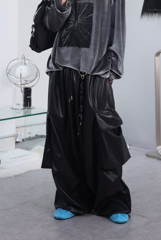 大側袋大闊腳仿皮工裝褲[ 2 COLOURS / 2 WAYS ]