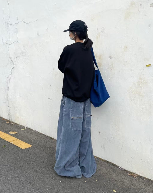 摺位BAGGY闊腳燈芯絨長褲[ 2 COLOURS / 3 SIZE ]