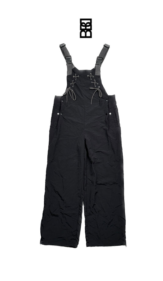 銷售額褲腳可束式風褸料直腳吊帶褲
