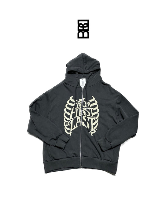 骨架字母雙拉鏈連帽衛衣外套[ 2 COLOURS ]