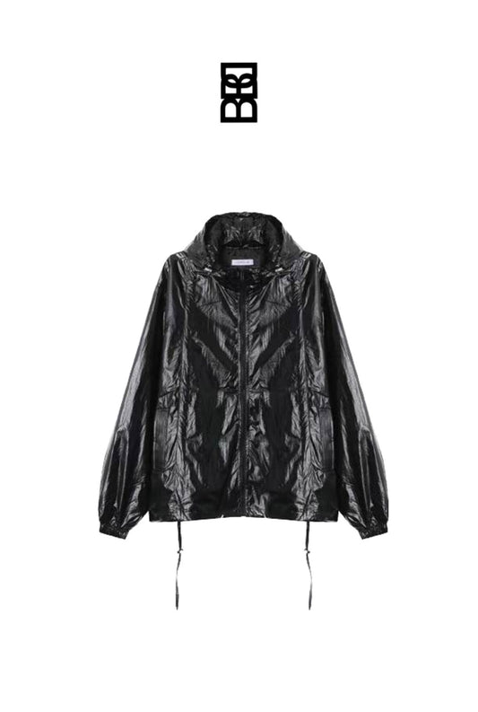 雙索繩摺紋拉鍊連帽外套[ 2 COLOURS ]