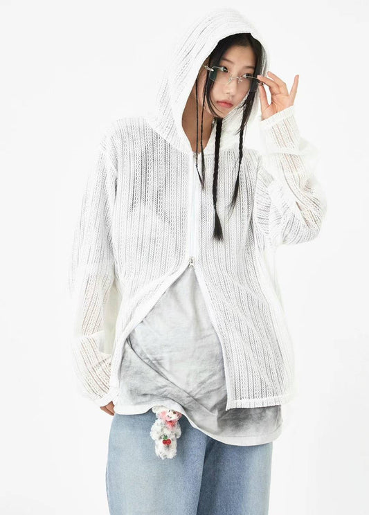 暗花洞洞雙拉鏈連帽外套[ 2 COLOURS ]