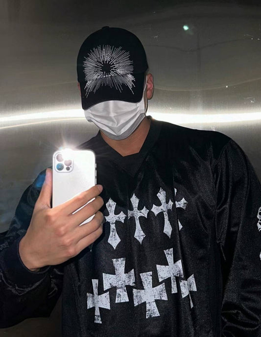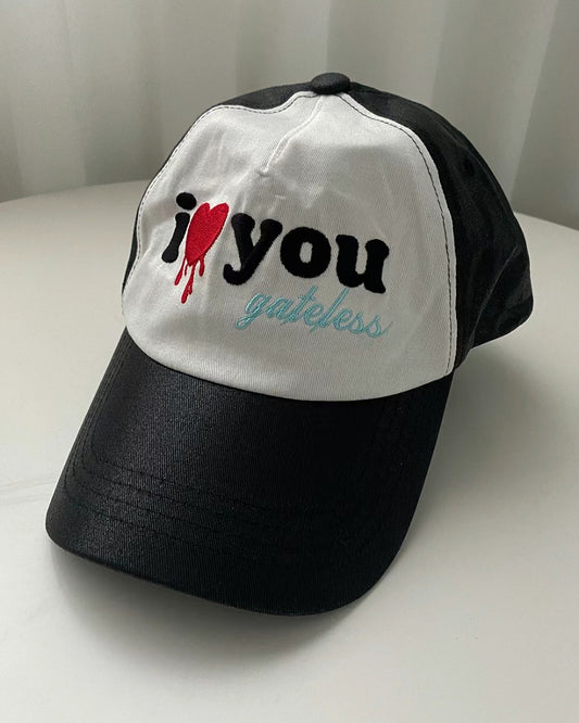 I LOVE YOU 黑白拼色蠟面棒球帽