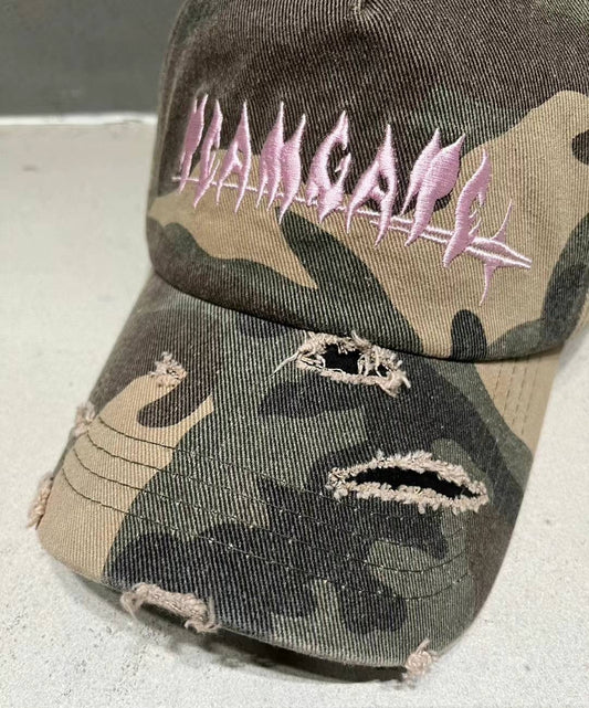 銷售額粉紅LOGO破洞迷彩棒球帽