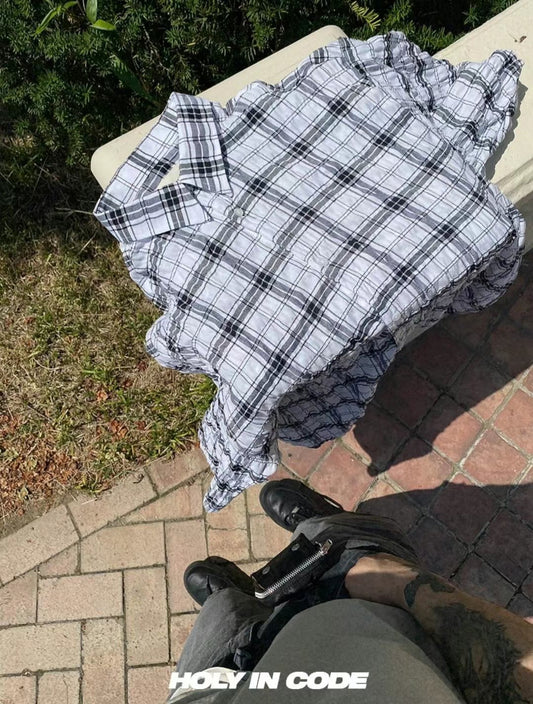 皺摺格仔短袖恤衫[ 3 COLOURS ]