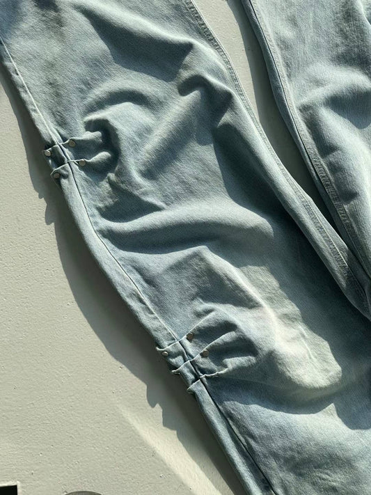 褲腳扣鈕立體層次牛仔褲[ 2 COLOURS / 3 SIZE ]