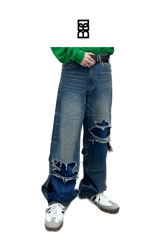 破壞層次拼色牛仔褲[ 2 COLOUR / 2 SIZE ]
