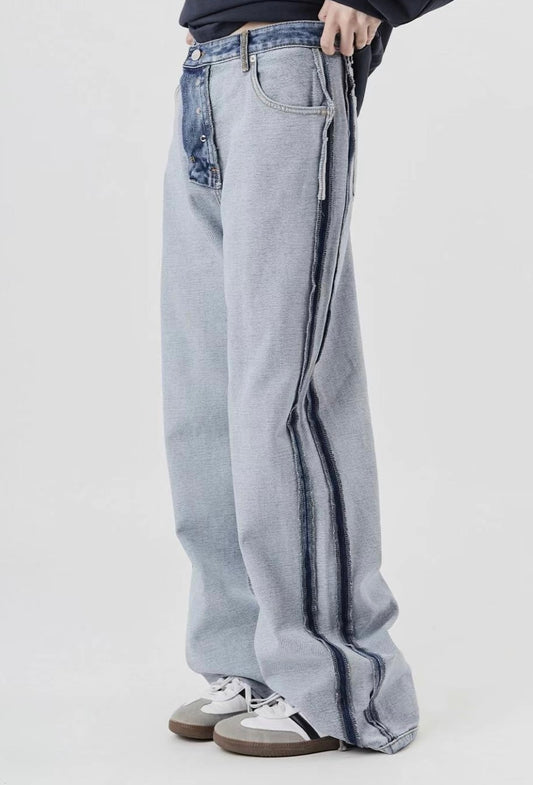 側間撞色直腳牛仔褲[ 2 COLOUR / 3 SIZE ]