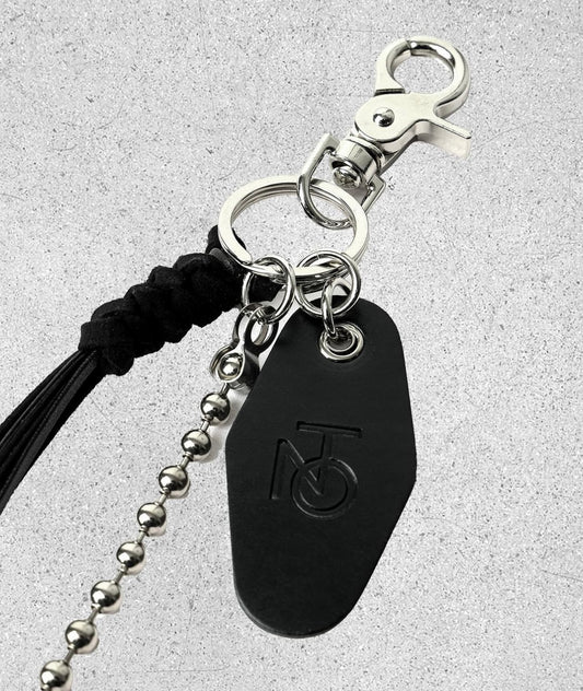 銷售額黑色皮繩銀鏈鎖匙扣飾