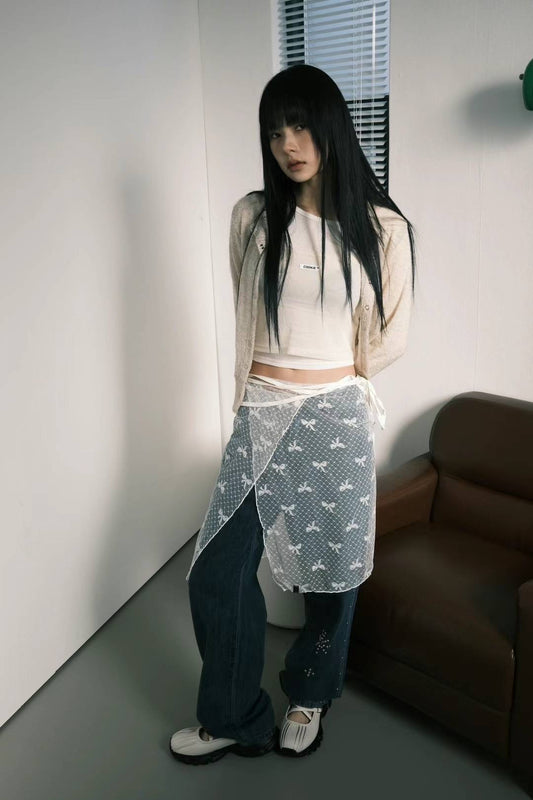 透視蝴蝶結綁繩圍裙[ 2 COLOURS ]