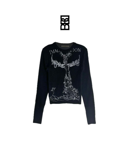 中世紀十字架圖案短版針織長袖衫[ 5 COLOURS ]