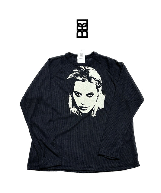 鼠尾草抽象印刷羅紋薄針織長袖衫[ 3 COLOURS ]