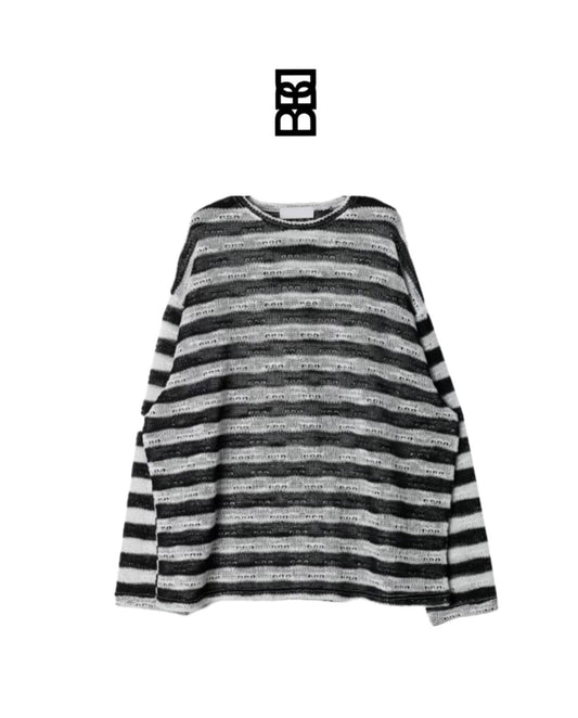 橫間透視洞洞薄針織長袖衫[ 3 COLOURS ]