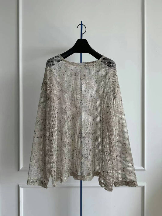 破損洞洞薄針織長袖衫[ 3 COLOURS ]
