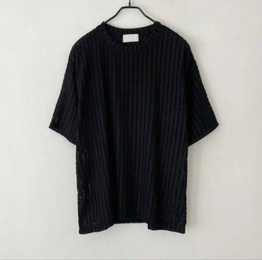 直線波浪紋薄針織短袖衫[ 2 COLOURS ]
