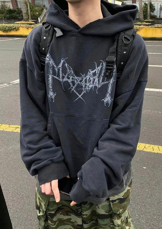 銷售額黑色蝙蝠異形文宇造舊連帽衛衣
