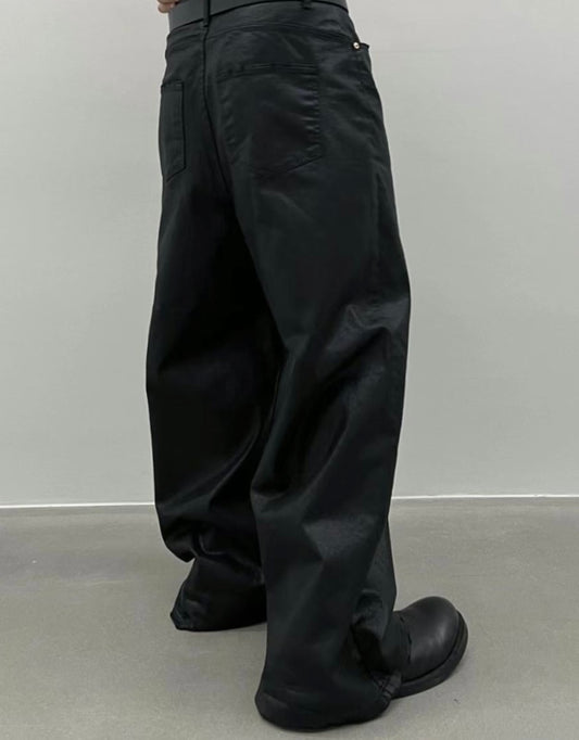 黑色雙立體曲線BAGGY牛仔褲[ 2 WAYS ]
