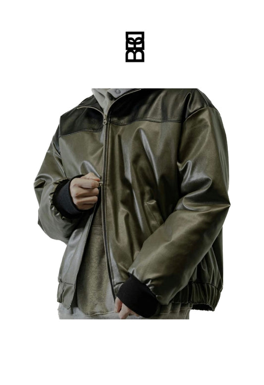 OVER SIZE 拼色雙拉鏈皮質外套[ 2 COLOUR ]