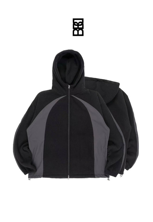 OVER SIZE搖粒絨拼風褸料雙拉鍊連帽外套[ 2 COLOURS ]