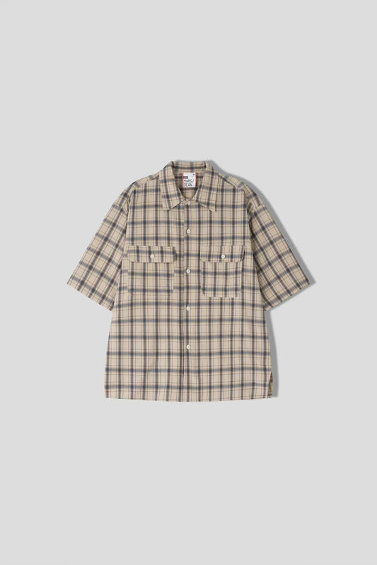 OVER SIZE雙袋格紋短袖恤衫[ 4 COLOUR ]