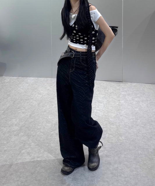 斜實線白紋洗水A型大喇叭黑色牛仔褲[ 3 SIZE ]