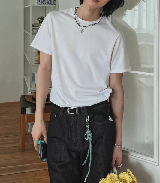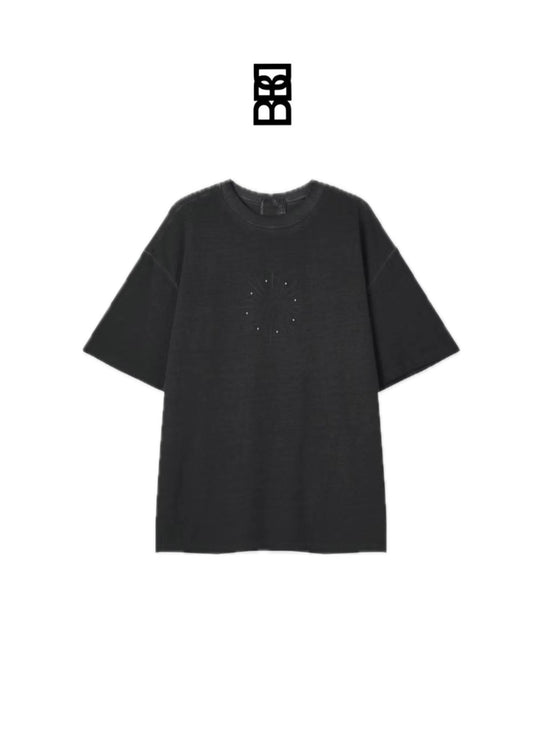 圓形鉚釘線條洗水短袖TEE[ 3 COLOURS ]