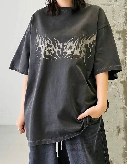 潦草英文oversize 跌膊短袖T恤 [2 COLOURS]