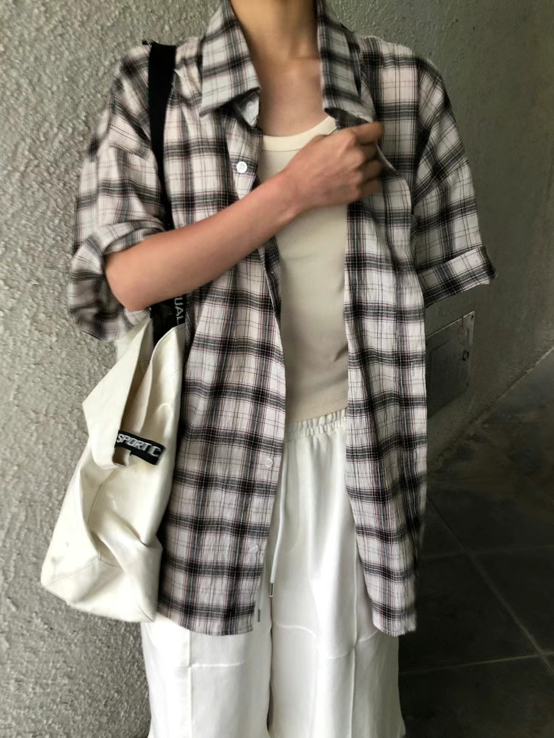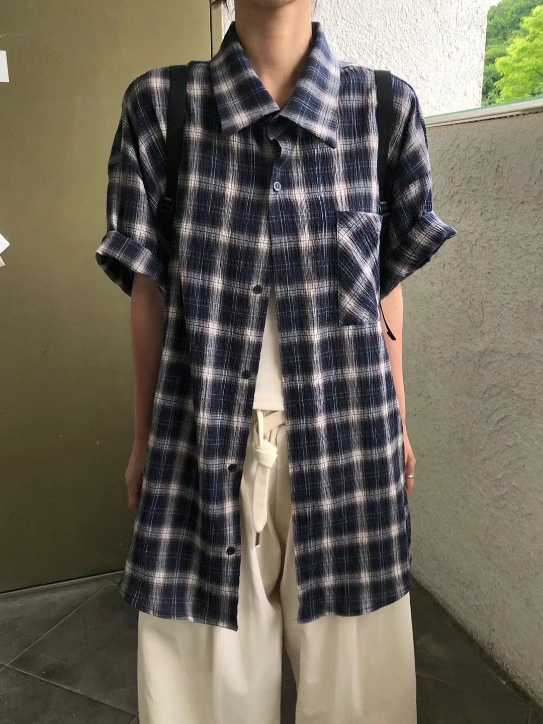 三色方格仔單袋短袖恤衫[ 2 COLOURS ]