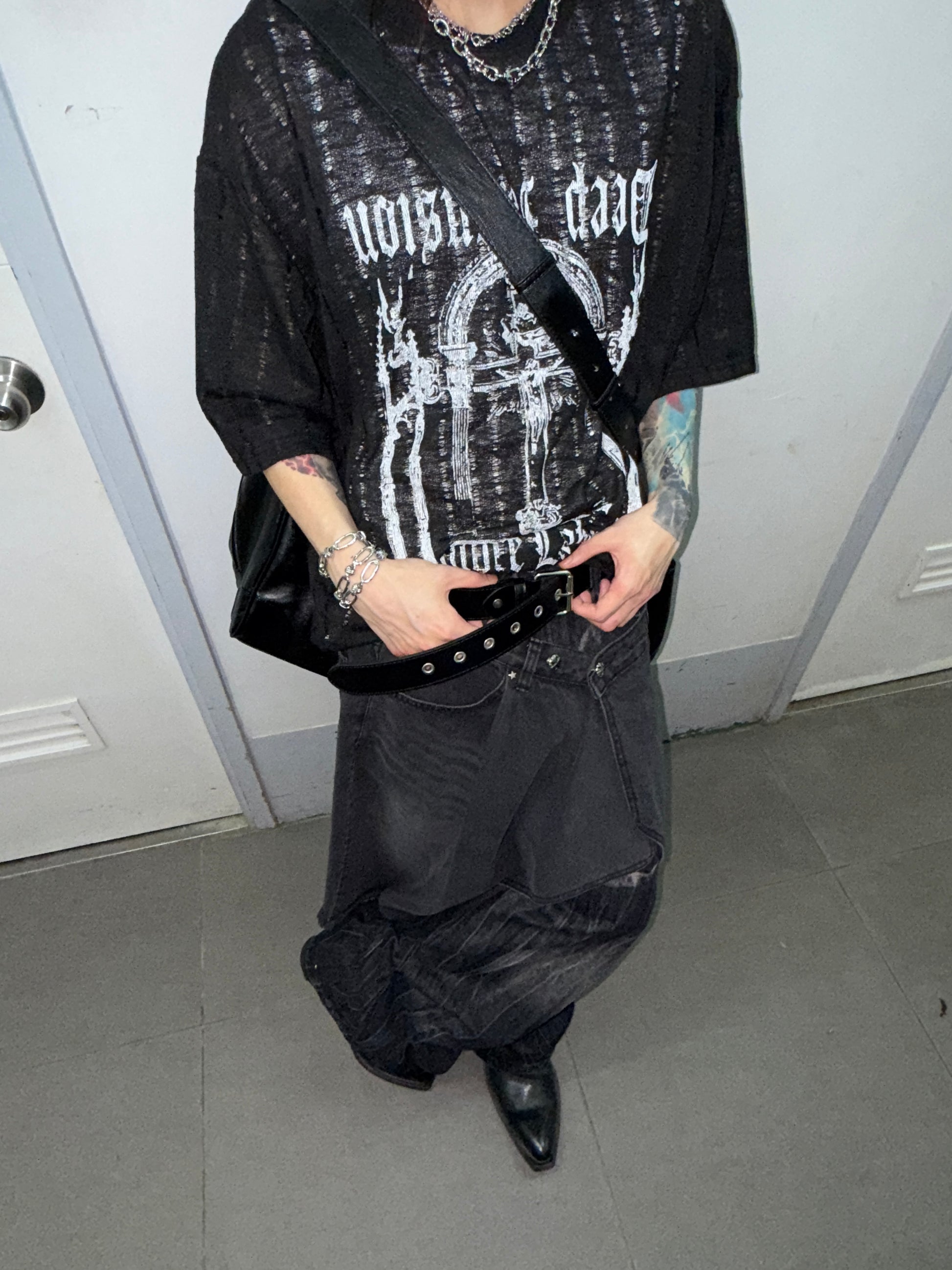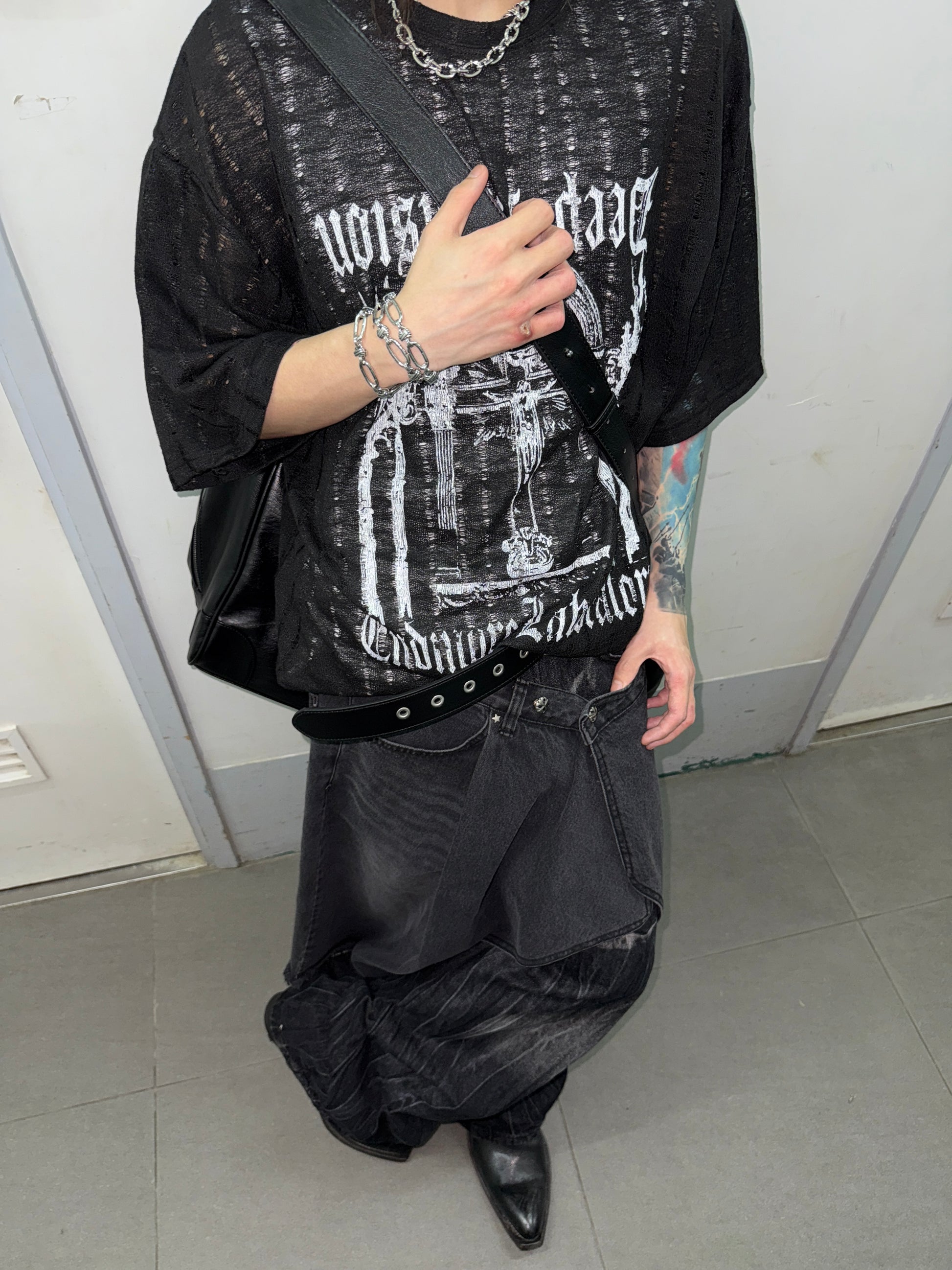 前後十字建築破損針織短袖衫[ 4 COLOURS ]