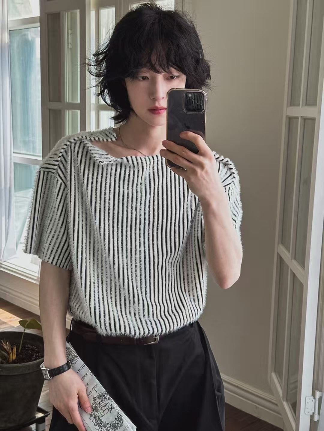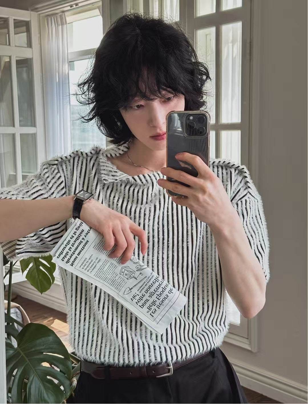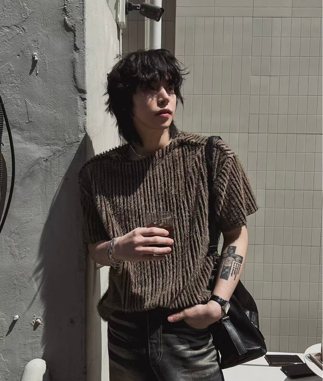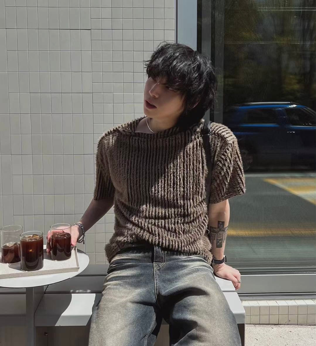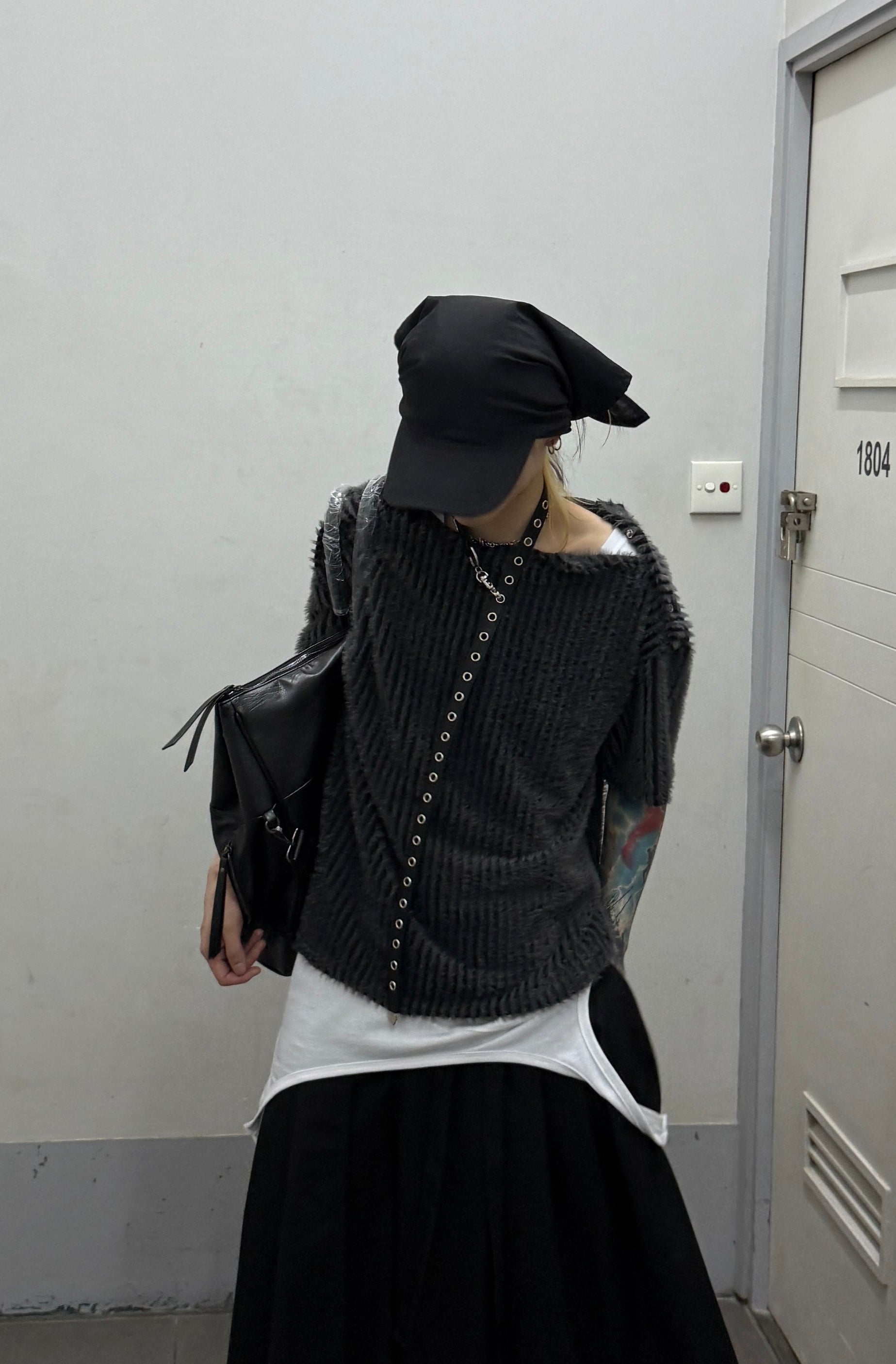 可扣式膊位直間拼毛毛短袖衫 [ 3 COLOURS ]