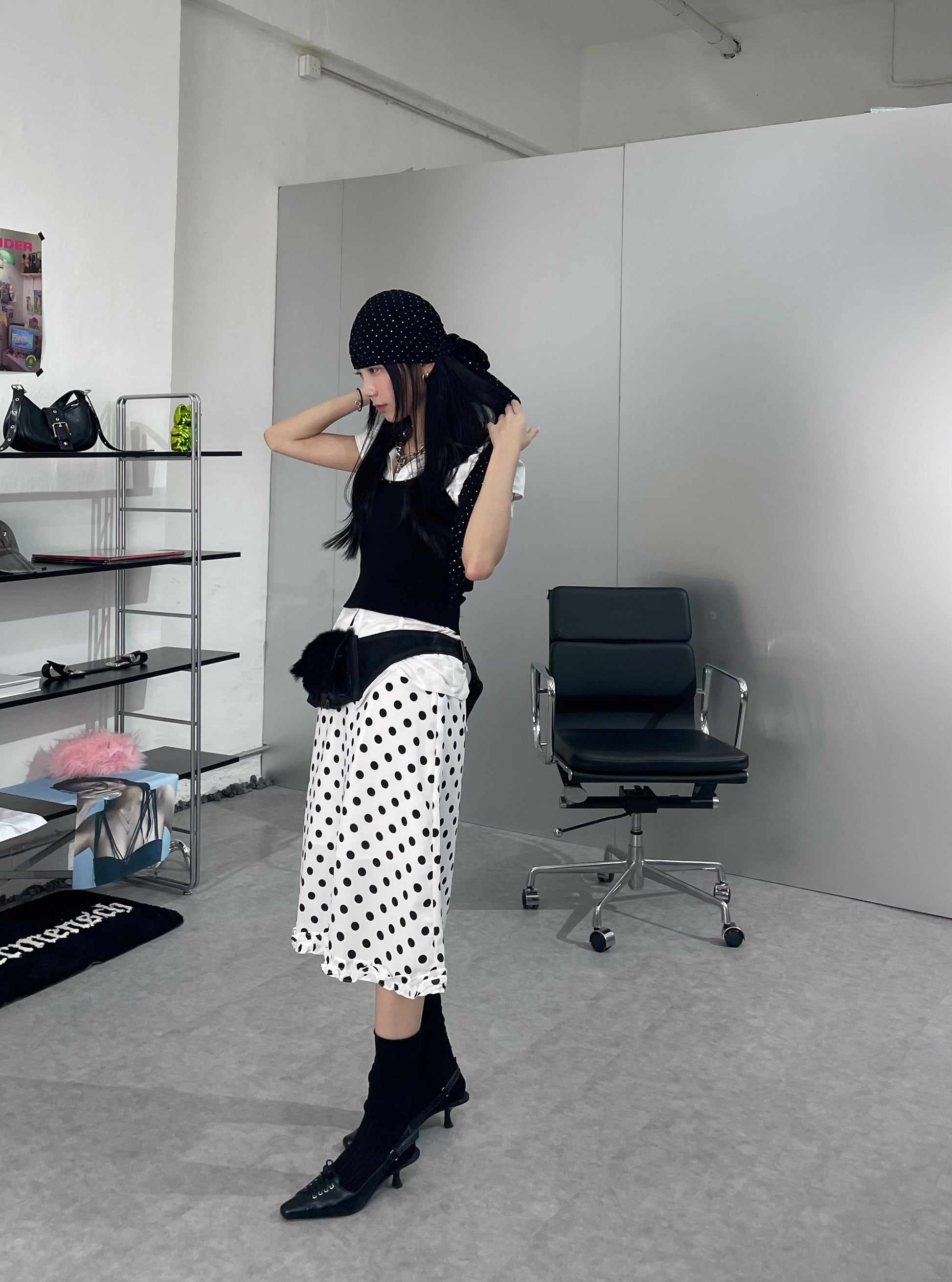 波點花邊雪紡中長裙[ 2 COLOURS ]