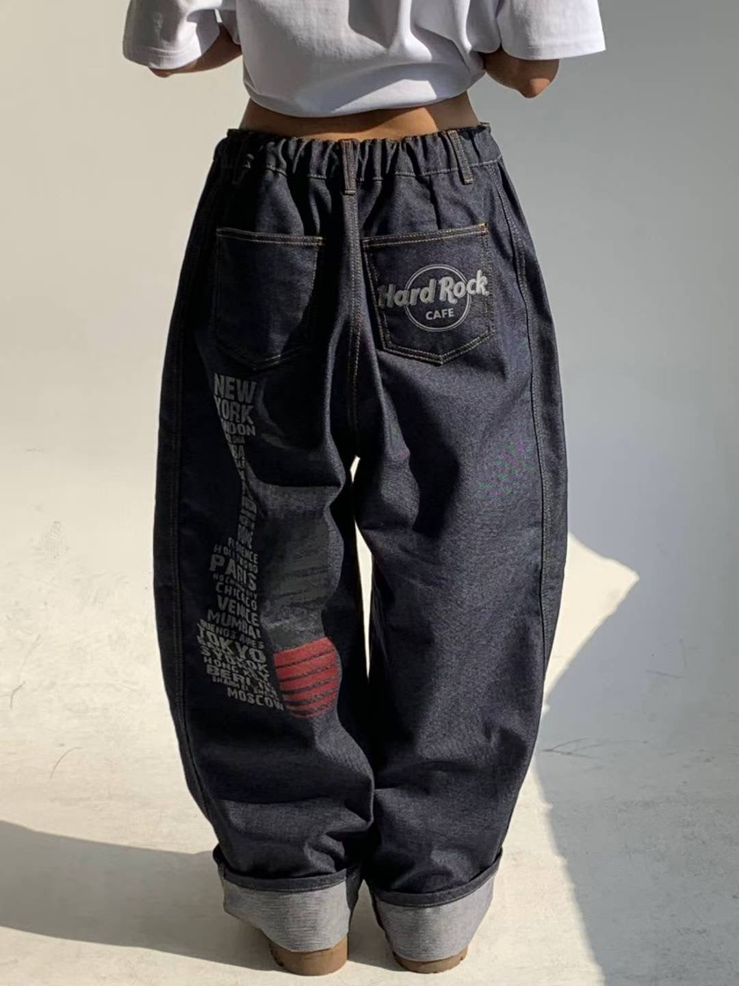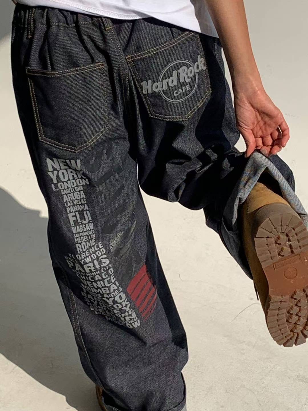 Hard Rock CAFE 背面印字半橡根腰原色牛仔褲 [ 2 COLOURS ]